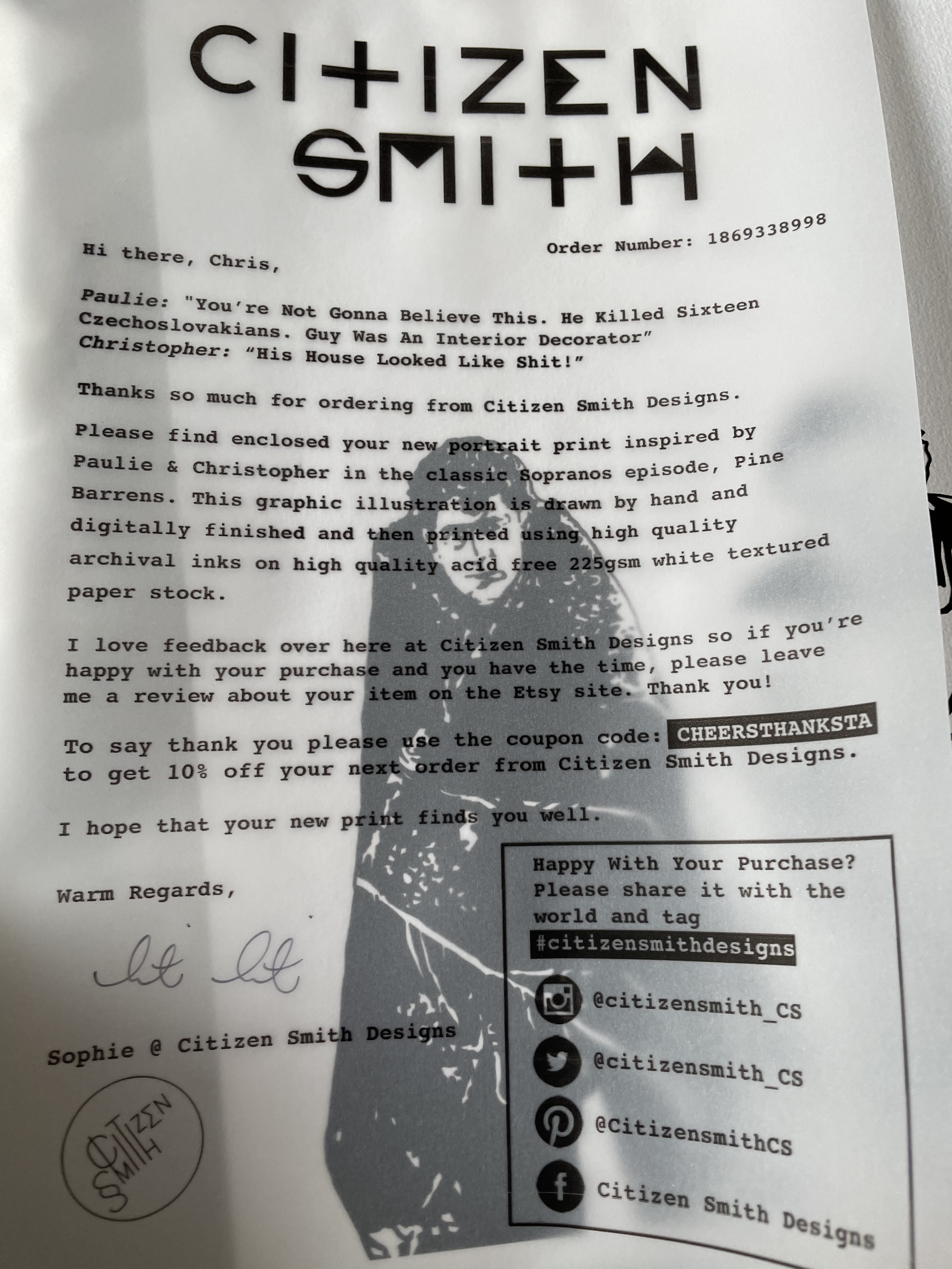 As I was watching the show he kept asking if I was up to Pine Barrens yet . . . As were people on social media when I was tweeting about the show. Therefore the second is an incredible drawing from that very episode, this is from Citizen Smith Designs!